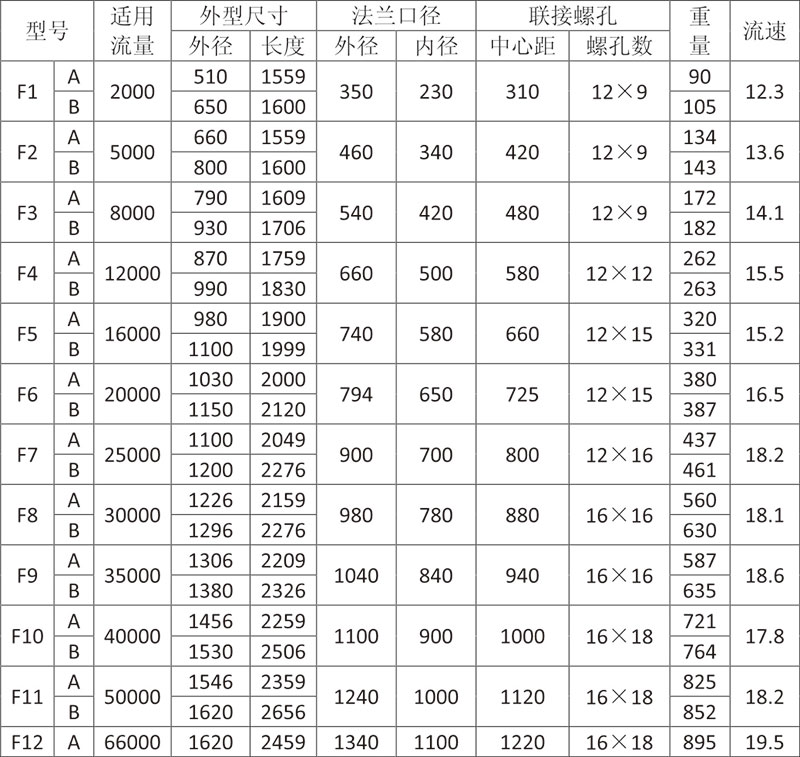 F型消聲器規格選用表