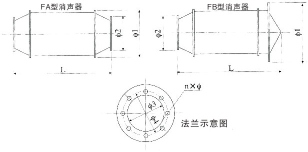 FA、FB消聲器外形尺寸示意圖