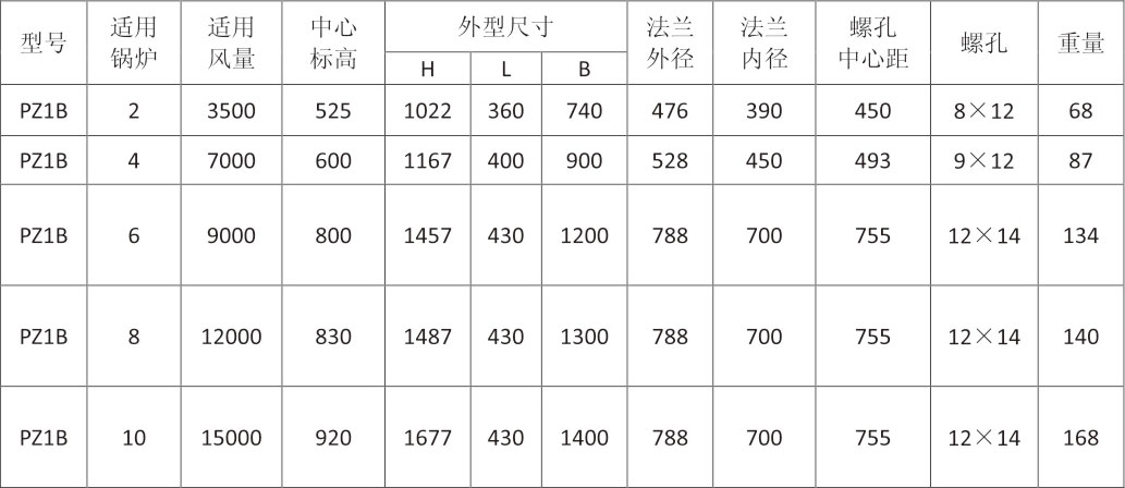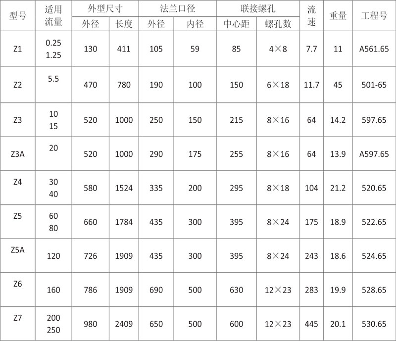 Z型消聲器規格選用表