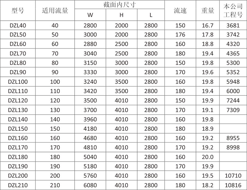 DZ型電站送風機消聲器規格選用表